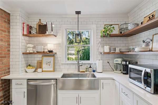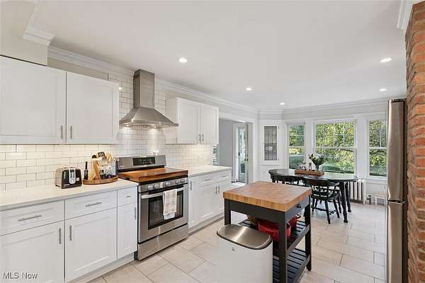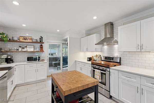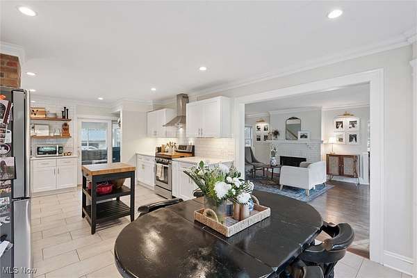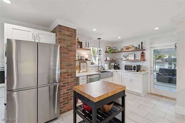 Welcome to 23052 Mastick Rd in North Olmsted-a modern farmhouse that perfectly blends timeless character and charm with thoughtful updates. Nestled on 1.5 private acres on a very desirable street this 3-bedroom, 2-bath home is filled with charm, natural light, and inviting spaces. Step into the heart of the home: a gorgeous, open kitchen featuring crisp white cabinetry, granite countertops, stainless steel appliances, and an island-ideal for everyday living or entertaining. You will delight in the immense amount of cabinets and counterspace! Brick accents and open shelving add warmth and style to the space, while sliding doors lead to a bright three-seasons room with views of the spacious backyard. The main level flows seamlessly into the living room, where you will find built-ins, a painted brick fireplace, and refinished hardwood floors create cozy sophistication. Those beautiful hardwood floors flow into the family room- wrapped in windows providing even more space to gather. Upstairs you'll find three bedrooms all featuring refreshed hardwood floors, an updated full bath with double sinks, and the convenience of a second-floor laundry. A large walk-up attic offers abundant storage space. The finished basement adds versatility with another full bath, while updated flooring and windows throughout the home ensure comfort and efficiency. Recent upgrades include a new refrigerator, washer, and dryer and many other updates made in the last 6 years. Outside, enjoy your expansive backyard complete with privacy fencing, a paver patio, and a 2-car garage and barn featuring a heated workshop. All this with easy access to the Metroparks right across the street, highways, downtown, shopping, dining, and schools-giving you city convenience with the peace of a private, park-like setting. This modern farmhouse is ready to welcome its next chapter-schedule your showing today!