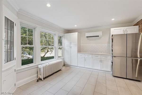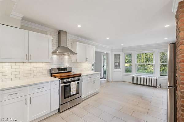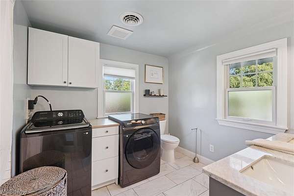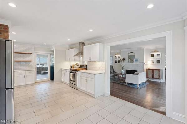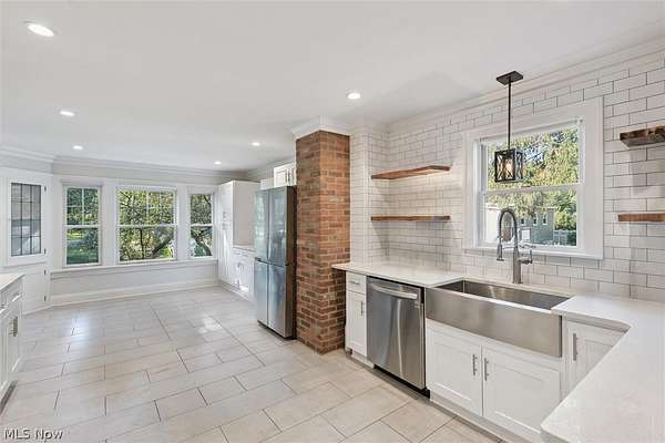 Welcome back to 23052 Mastick Rd in North Olmsted-an inviting modern farmhouse blending timeless character with thoughtful updates and ready for its next owner. Situated on 1.5 acres this 3-bedroom, 2-bath home offers charm, natural light, and beautifully connected living spaces. The spacious open kitchen features crisp white cabinetry, granite countertops, stainless steel appliances, and abundant cabinet and counter space. Brick accents and open shelving add warmth, while sliding doors lead to a bright three-seasons room overlooking the expansive backyard. The main level flows into the living room with built-ins, a painted brick fireplace, and refinished hardwood floors that continue into the sun-filled family room wrapped in windows. Upstairs are three bedrooms with refreshed hardwood floors, an updated full bath with double sinks, and convenient second-floor laundry. A walk-up attic provides excellent storage, and the finished basement with a second full bath offers flexible space for guests, recreation, or a home office. Recent improvements include a new refrigerator, stove, washer, dryer, and many additional updates within the last six years. Outside, enjoy a park-like yard featuring two fully fenced areas-ideal for dogs-plus an additional unfenced rear portion that offers privacy and endless possibilities for future use. The property also includes a paver patio, 2-car garage, and a heated barn. Located across from the Metroparks and minutes from highways, shopping, dining, downtown, and schools, this property offers peaceful surroundings with everyday convenience. Schedule your showing today!
