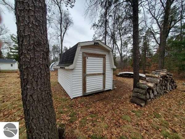 Est $386/moCUTE ONE BEDROOM COTTAGE on 4 lots, totaling just over 3/4 acre! Home sits on one lot and the other 3 are vacant and nicely wooded. There is a nice deck for relaxing while you watch the wildlife, a fire pit and a shed for additional storage. A new roof on the home was installed approximately 6 years ago and the full bath has been updated. Sits at the end of road for some privacy and would make a quaint getaway or cozy year-round residence.