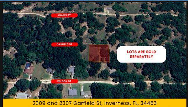 TWO Adjoining Cleared Vacant Lots on Garfield Street in Inverness, Florida! Perfect for Builders, Investors, or aspiring homeowners looking to capitalize on Florida's growing real estate market. These parcels offer excellent potential and opportunity, ideally located with easy access to downtown Inverness, Hernando, Crystal River, and Homosassa. Just minutes away are the historic downtown district, the Valerie Theater, shops, restaurants, medical facilities, and Citrus Memorial Hospital. Outdoor enthusiasts will love the nearby 46-mile Withlacoochee State Trail, local parks, and public boat ramps connecting to the scenic Inverness Chain of Lakes. The neighborhood is quiet and lightly developed, offering a peaceful setting with natural Florida surroundings. The lots are Cleared, level, and Buildable, located in Flood Zone X (Not in a flood zone). No HOA-you can build a Tiny Home, Barndominium, or Traditional Frame Home to suit your lifestyle. Start building today! With access to US-41, SR-44, and the Suncoast Parkway, travel to Ocala, Tampa, and Orlando is quick and convenient. Qualified buyers can own these with as little as 20% down payment. Buy one lot or purchase both - an excellent investment opportunity in Florida's beautiful Nature.