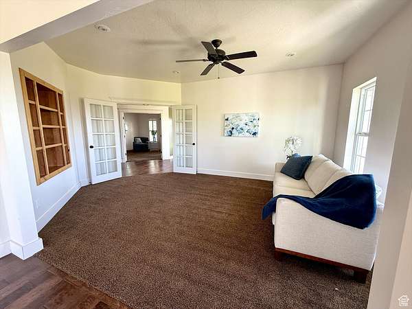 - Basement Entrance, Covered Patio, Double Pane Windows, Entry (Foyer), Horse Property, Lighting, Open Porch, Sliding Glass Doors