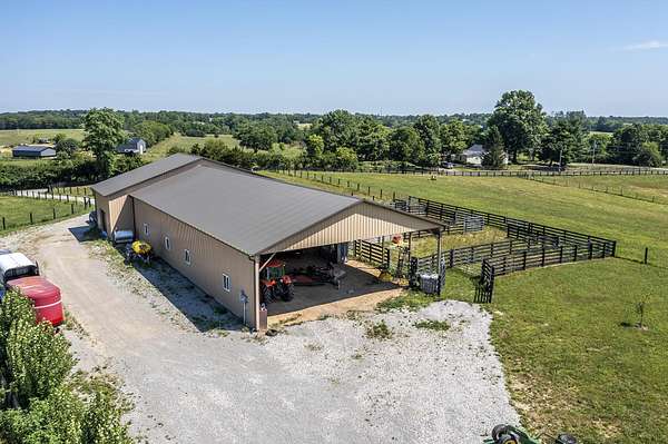 This exceptional, fully improved estate acreage presents a rare opportunity in Fayette County, just minutes from Lexington and with convenient access to I-75. Encompassing gently rolling, private countryside, the property features approximately 3,175 linear feet of road frontage along Evans Mill Road, allowing for multiple premier homesites or thoughtfully designed estate improvements. The land has been meticulously developed with long-term stewardship in mind, including 4-board and woven wire fencing, a gravel farm lane, underground water lines, electric service, multiple gated entrances, and professionally renovated pastures. Ritchie waterers support rotational grazing, water conservation, and responsible livestock management, making the farm equally suited for refined agricultural use or an executive rural retreat. A newly constructed barn and equipment building elevates the offering, complete with an 8-pen cattle working facility, climate-controlled workroom, workshop with garage bay, half bath, and hot water. Both the barn and front pasture are enhanced with in-ground electric Smart Dog fencing, blending modern convenience with discreet design. Tucked away at the end of a dead-end road, this serene property offers rare seclusion while bordering the protected beauty of Raven Run Nature Sanctuary. The farm is rich in wildlife, including wild turkey and exceptional trophy-class whitetail deer, some of the largest recorded in the county-creating an unparalleled recreational and natural setting. Protected under the Purchase of Development Rights (PDR) program, this distinguished farm ensures the preservation of its pastoral character, natural beauty, and investment integrity for generations. A truly rare offering combining privacy, proximity, and premier improvements in one of Central Kentucky's most desirable locations.