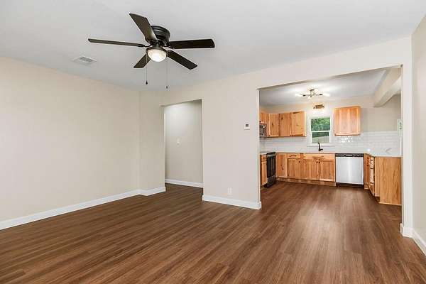Est $2,348/moTwo remodeled homes on 1.5 acres in Park Hill School District for the price of one! First home is a 1,200 sq ft true ranch with three bedrooms and one bath. All new flooring, paint, kitchen cabinets, granite countertops, bath vanity, beautiful tile shower, lighting and attached garage. The second home is also a 902 sq ft ranch with two bedrooms, two full baths, and open kitchen/dining area. Located on peaceful acreage just off of I-29, only 20 minutes to KCI, 10 minutes to downtown Kansas City and Zona Rosa! Perfect for multi-generational living or to generate rental income.