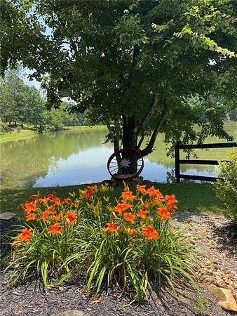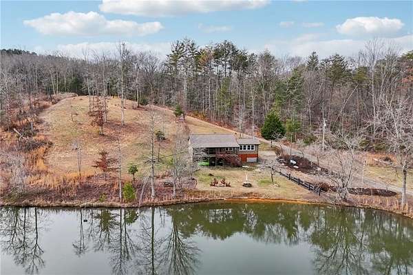 Paradise in the Mountains! Discover a truly rare opportunity with this breathtaking property featuring expansive year-round mountain views, gently rolling cleared hills, and a stunning 6-acre stocked lake. Surrounded by beautiful gardens, flowering trees, and abundant wildlife, this property offers endless possibilities for outdoor living and recreation. Ideally located less than 10 miles from downtown Ellijay, and close to apple country and numerous upscale wineries, the setting is both private and convenient. Whether you envision a private mountain estate, estate subdivision, vineyard, wedding venue, horse farm, or the realization of your own unique dream, this property delivers the space and flexibility to make it happen. The beautifully maintained 2-bedroom, 2-bath cottage overlooks the lake and features a new roof, fenced backyard, and cozy fire pit-perfect for relaxing evenings outdoors. An unfinished basement includes a workshop and offers excellent potential for expansion or additional storage. Additional highlights include two parcels, multiple prime building sites, an outbuilding, and covered parking ideal for tractors, ATVs, and outdoor equipment. With room to grow and unlimited potential, this is a truly hard-to-find dream property in the North Georgia mountains.