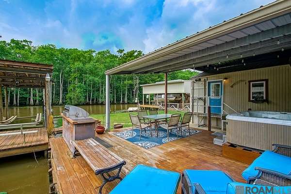Waterfront property on the Chinquapin Canal with direct access to the Amite River, Diversion Canal, and Lake Maurepas. The structure is fully furnished and move-in ready. Interior features include two sleeping areas, one and a half baths, and a kitchenette. Property may be suitable for full-time use, recreational use, or potential short-term rental; buyer to verify all regulations and requirements. Outdoor improvements include a 240 sq. ft. detached outdoor kitchen and entertaining area, covered porch with hot tub, and a large open yard. Water access is a breeze with a covered boat slip and lift just steps form the property, plus a second lift directly on the canal.