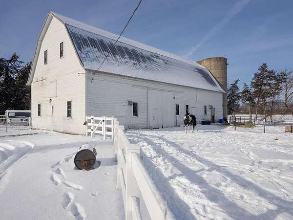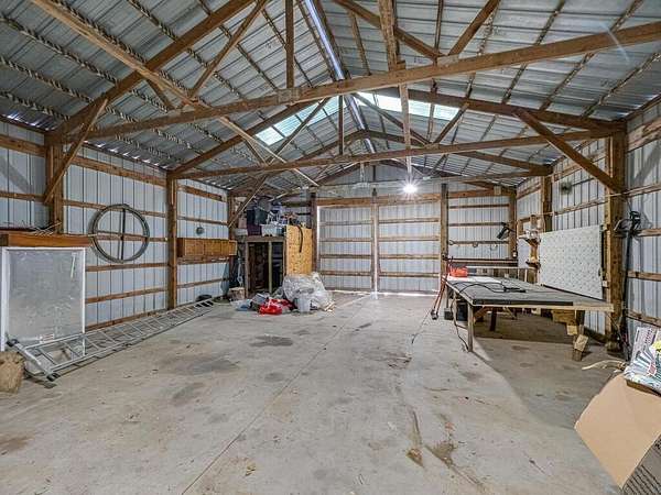 The spacious 32x72 barn offers three separate areas ideal for animals or machinery and features a large hayloft for ample storage. You'll also find a 30x56 pole shed with a concrete floor and two 15' entrance doors perfect for equipment, vehicles, or workshop space. Additional outbuildings include a 16x28 corn crib/storage shed and a small poultry building offering endless possibilities for your hobbies.