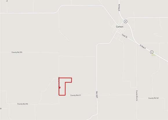 Head south from I-20 on S HWY 6 to Carbon, Texas. Go south on S Main then west on FM 1027. Then right on CR 296. When CR 296 runs into CR 295, take CR 295 South. Property is on your left about 1.3 miles down CR 295. If you get to a mailbox by a big oak tree in the middle of CR 295, you passed it.