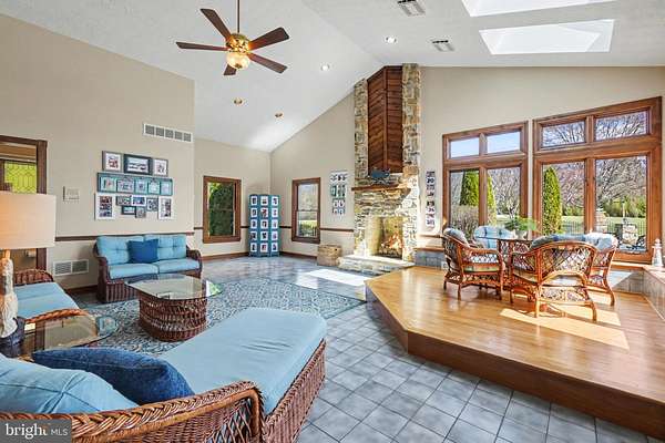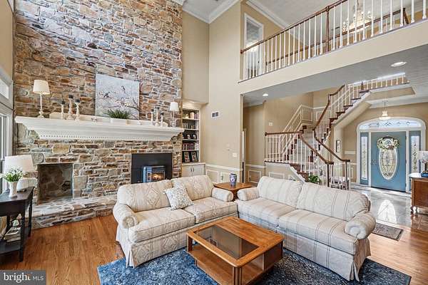 Experience elevated living in this extraordinary home set on 3.6 private acres in the heart of Fallston. Showcasing over 7,600 square feet of refined interior space, this stunning Colonial Revival with grand Neoclassical presence makes an unforgettable first impression with its stately columned facade and commanding curb appeal. Inside, sophistication meets comfort with beautifully appointed living spaces designed for both entertaining and everyday living. The dramatic two-story living room is a true showstopper, featuring a soaring wall of windows that floods the home with natural light, along with a floor to ceiling stone fireplace with pellet stove that adds warmth, character, and cozy ambiance. The main-level primary suite offers a private retreat, complete with a wood-burning fireplace and French doors that open directly to the patio and pool area-creating a seamless indoor-outdoor experience and a true resort-like feel. The en suite primary bath provides a spa-like experience with a steam shower and soaking tub. The upper level features a bedroom with an ensuite bath, along with two additional bedrooms that share a Jack-and-Jill bathroom. The finished lower level adds versatility and value, complete with a bonus room with a full bath - ideal for a 5th bedroom, executive office, fitness space, or creative studio-tailored to fit your lifestyle. Seamless indoor-outdoor living awaits as French doors along the length of the house lead to an expansive brick paver patio overlooking your own private resort. The backyard is nothing short of exceptional-featuring a pristine inground gunite pool, hot tub, and inviting fire pit, all surrounded by lush, landscaped grounds offering the ultimate in privacy and tranquility. This is more than a home-it's a statement property. A rare opportunity to own a premier home where luxury, space, comfort, and setting come together flawlessly.