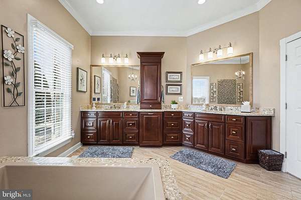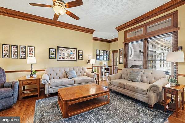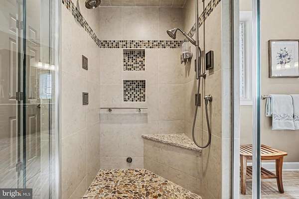 - Attic, Breakfast Area, Built-Ins, Carpet, Ceiling Fan(s), Chair Railings, Crown Moldings, Dining Area, Entry Level Bedroom, Family Room Off Kitchen, Formal/Separate Dining Room, Gourmet Kitchen, Pantry, Pellet Stove, Primary Bath(s), Recessed Lighting, Skylight(s), Soaking Tub Bathroom, Stall Shower Bathroom, Tub Shower Bathroom, Upgraded Countertops, Walk-In Closet(s), Walk-In Shower Bathroom, Wet/Dry Bar, Wood Floors