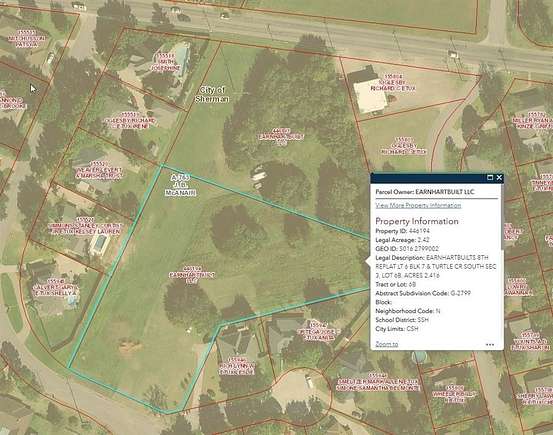 Est $859/moDiscover a prime opportunity for development in Sherman, Texas with this expansive plot of land spanning almost 2.5 acres. Perfectly positioned for growth, this property is ready to be transformed into your vision. Act quickly to secure this valuable investment before it's too late! This land is platted and ready to be developed on. Vacant lots are not to be found in this highly esteemed and desirable neighborhood of Turtle Creek. Information provided is deemed reliable but is not guaranteed and should be independently verified. 3300 sq ft house plans are available with purchase.