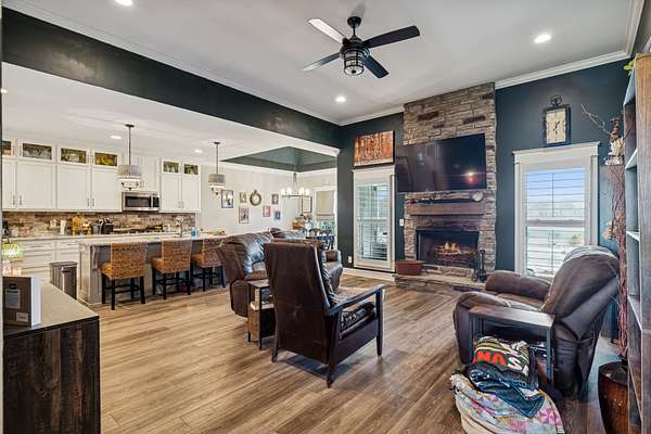 Est $3,883/moBeautiful 2702. SqFt home built in 2020 on large lot with open floor plan. 4 bedrooms, 3 full baths. Open kitchen / den floor plan with rock fireplace and gas logs. Walk-in pantry, gas grill top, electric oven. Engineered hard wood floors throughout. 2-car garage, bonus room with step-up office. Covered porch, in-ground pool built in 2022. Sauna stays with property. All attached flat screen TVs to stay with home.