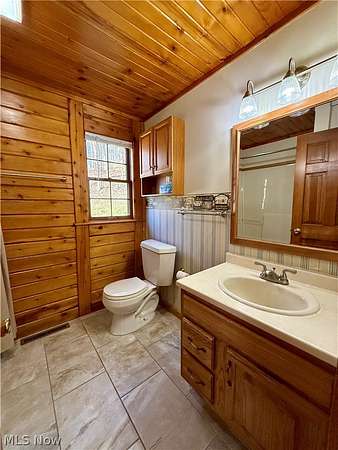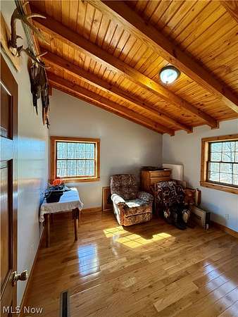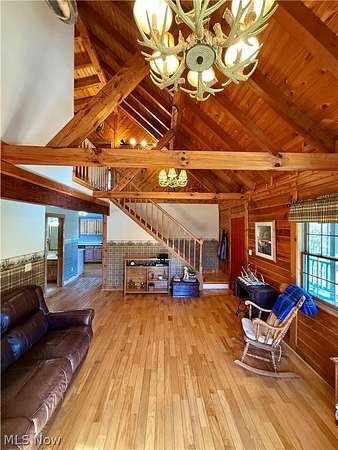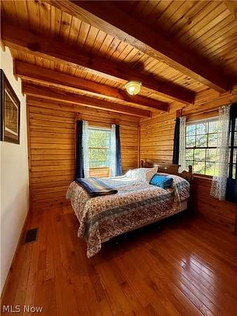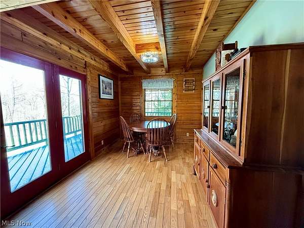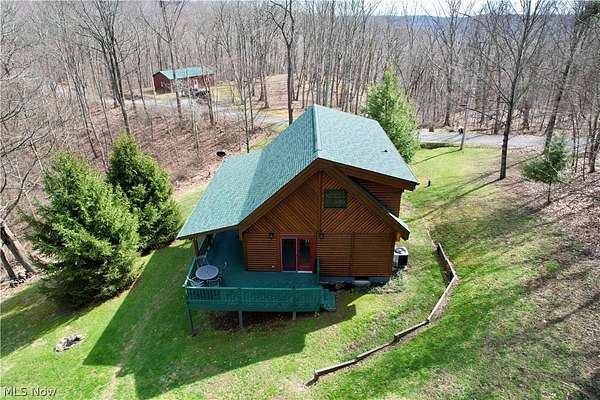 One-of-a-kind custom log home on a breathtaking and ultra-private 97-acre parcel offering comfort, seclusion, and premier recreational opportunity. Built in 1992 and meticulously maintained with newer roof, furnace, central A/C, and appliances. Enjoy peaceful surroundings from both front and rear decks. Main level features a spacious living room with soaring cathedral ceiling, eat-in kitchen with deck access, one bedroom, and a full bath. Upper level offers two bedrooms, a second full bath, and storage closets. Lower level includes a one-car integral garage, mudroom area, and utility/laundry space with slop sink. Home features three heat sources: heat pump, propane, and outdoor wood burner. Large 40x24 outbuilding with oversized door provides excellent storage or workshop space. Property is divided by a quiet, low-traffic dead-end road, enhancing privacy and great access to multiple spots for hunters. A standout feature of this property is the exceptional, mature timber stand, carefully managed and selectively grown for over 35 years. Comprised of high-value species including red oak, white oak, poplar, and cherry, this timber represents significant current and future financial value, as well as long-term sustainability. The strong presence of mast-producing oaks enhances wildlife habitat and hunting potential. A timber survey is available, offering insight into volume and investment potential. Extensive trail system leads to many prime hunting locations, ridge tops, hillside streams and multiple springs. Property is loaded with wildlife including trophy whitetail deer and abundant turkey, with trail cam history available. Features include food plot area, multiple salt lick sites, and excellent mushroom hunting. 175 yard shooting range and a pistol and bow range! Ideal as a full-time residence, private getaway, hunting retreat, or land/timber investment. This is truly a one of kind Ohio retreat and it will not last long! Showings by appointment only.