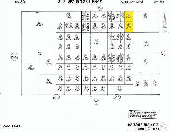 Est $116/moTwo 2.5 acre lots being sold together for a total of 5 acres. Zoning is E(2 1/2)M. Sale includes APN 228-351-03 & 04.