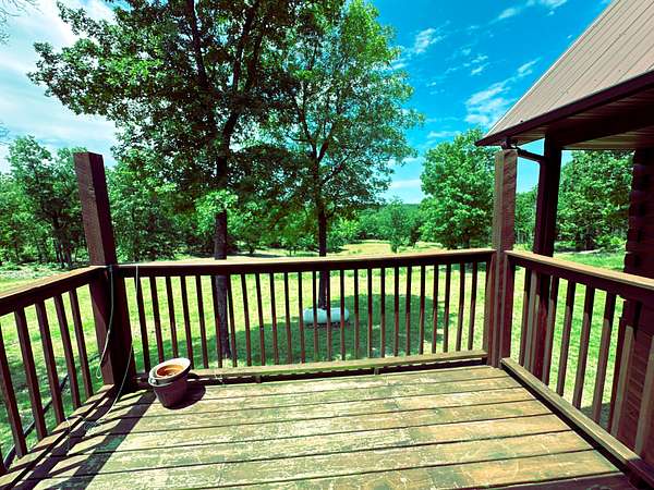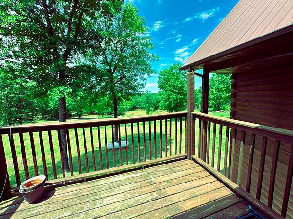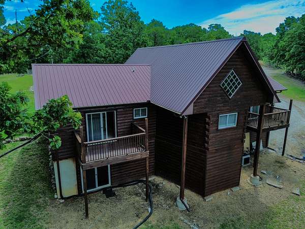 Offering a blend of rustic charm and modern convenience, this property presents a unique opportunity for those seeking privacy, natural beauty, and the potential for homesteading. This home boasts over 2,500 square feet of living space, featuring three bedrooms and three bathrooms. The open floor plan on the main level is enhanced by stunning hardwood flooring, dramatic vaulted ceiling, large country kitchen and wood stove, creating a bright and airy atmosphere. A standout feature of this home is the inclusion of two master suites on the main level. Adding to the allure, each master suite enjoys access to its own private balcony, ideal for enjoying morning coffee or soaking in the serene views. The basement offers even more living space with a third bedroom and a full bathroom, providing privacy for family members or guests. A family area in the basement offers a versatile space for recreation or media. Practicality is also key, with a large storage area that could easily be converted into a canning pantry for those embracing a self-sufficient lifestyle. The basement also features a storm shelter. The expansive 30-acre property is a nature lover's dream. Mostly wooded, it offers incredible privacy and a haven for wildlife.