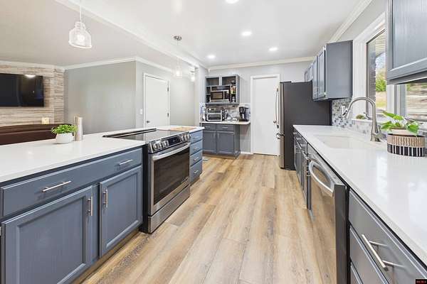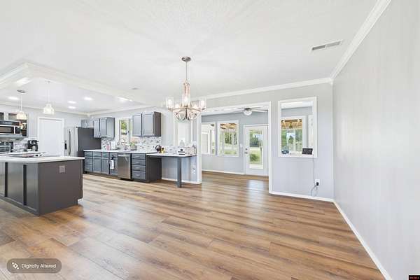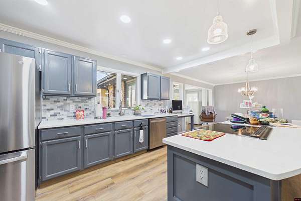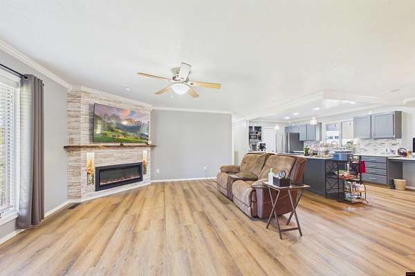 Step into this beautifully remodeled 2-bedroom, 1.5-bath brick home that perfectly blends modern comfort with peaceful country living, featuring durable LVP flooring throughout, sleek granite countertops, and a stunning electric fireplace that creates a warm, inviting focal point in the living space, along with a low-maintenance metal roof and efficient central heat and air for year-round comfort, plus the convenience of a 1-car attached garage; situated on 10 picturesque, park-like acres m/l, the property offers both privacy and functionality with a spacious 30x40x20 insulated shop building, an additional shop with small stables ideal for hobby farming or livestock, a large fenced garden area perfect for growing your own produce, and a chicken coop ready for your homesteading dreams, all conveniently located on paved county road frontage in a highly desirable area just minutes from downtown Mountain Home, giving you the best of both tranquility and accessibility.