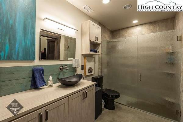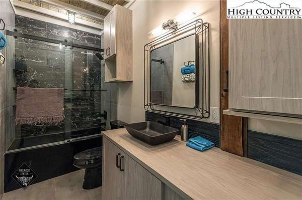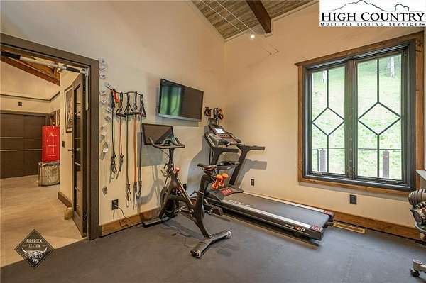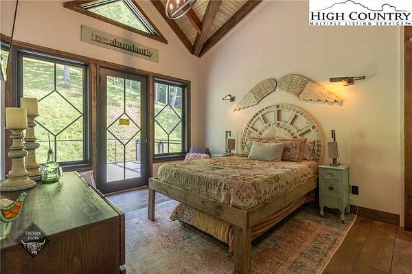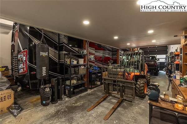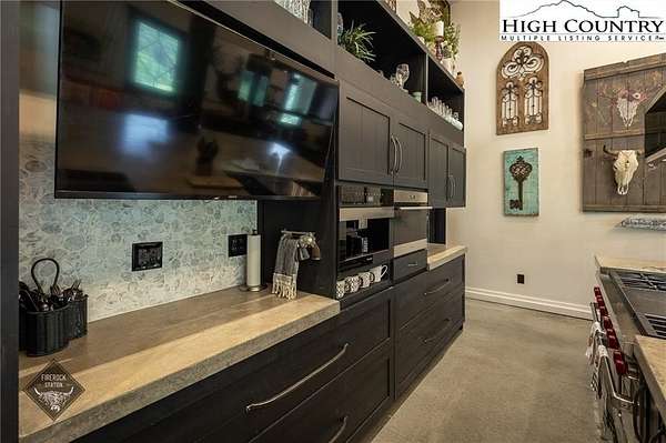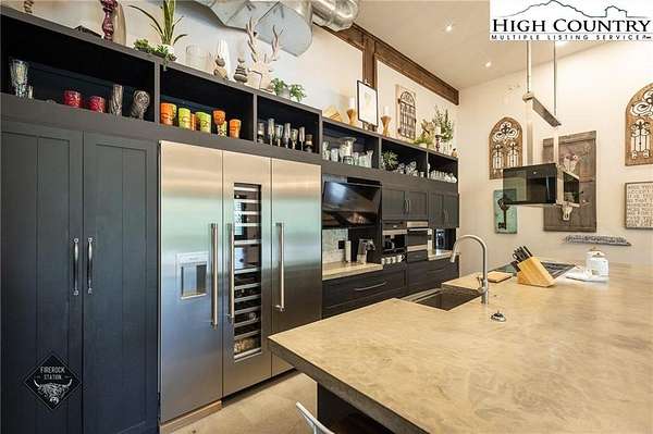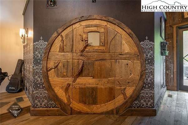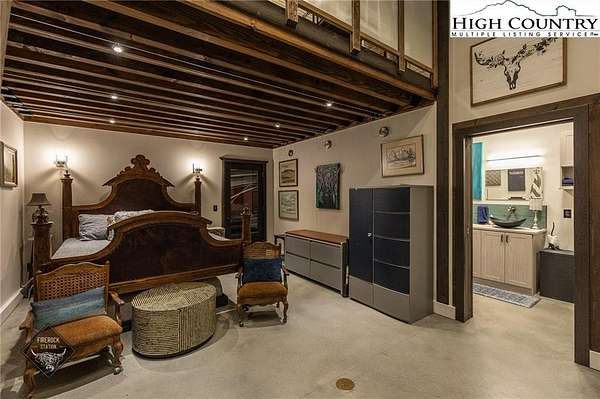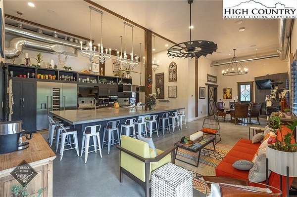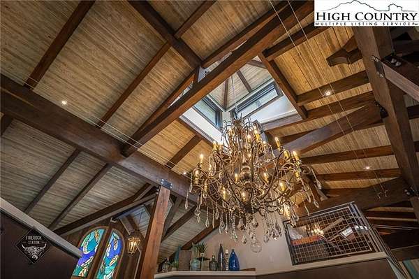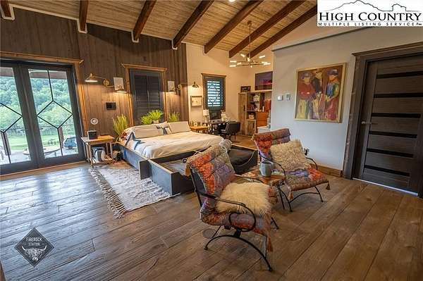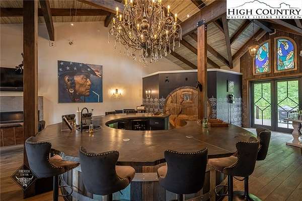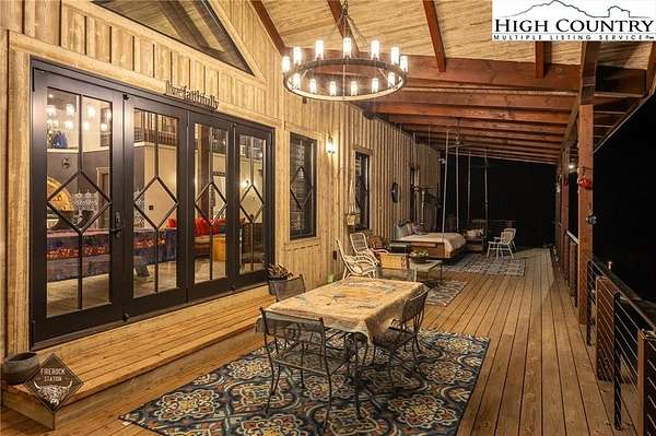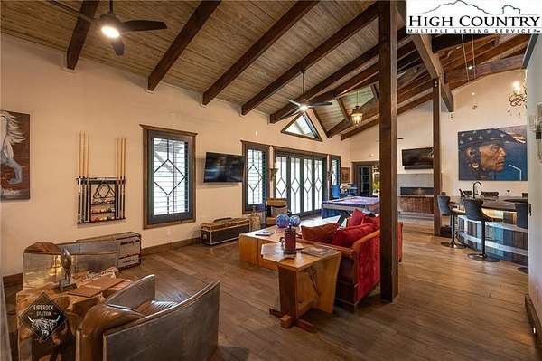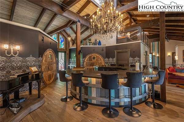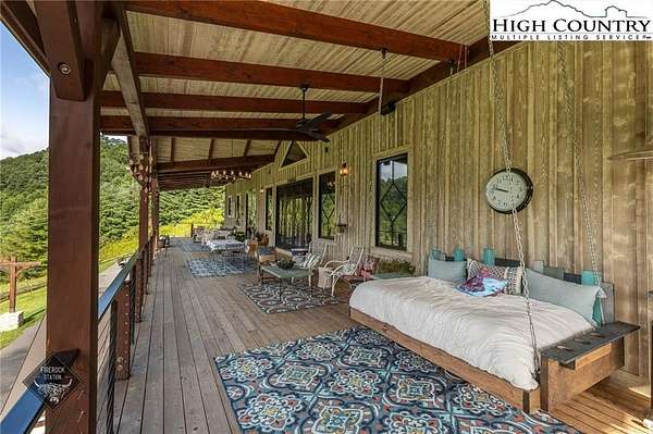 Luxurious custom and truly one-of-a-kind timber frame residential home perched above the High Country's award winning wedding venue, Firerock Station. Can be purchased separately or together with the venue for $6,250,000. First floor has a massive kitchen with a hand poured concrete island that you could literally have a dance party on. Dining area with gas fireplace, small sitting area, walk-in pantry, bonus room with en-suite including laundry as well as a lofted office space above. Take the elevator (should you wish) upstairs to the massive great room with cathedral ceiling, hand scraped oak flooring, horseshoe bar with reclaimed barn wood, game area with second gas fireplace, main laundry room, theatre room with 7 reclining theatre seats & projector screen, guest bedroom with en-suite plus additional sleeping space in the loft. Impressive primary suite with an incredibly large marble shower, oversized jacuzzi tub with fireplace, multiple walk in closets as well as a personal gym. Massive RV garage with two additional ATV garages & space for about 4 addtl vehicles as well as an insane amount of storage. Behind house is a fully fenced in yard that goes about half way up to the ridge. There is a covered deck that spans the length of the home & offers lovely pastoral views. This property would make an excellent Short Term Rental & is being offered fully furnished. Because the ingress/egress is directly from the garage the first floor sleeping area cannot be called a bedroom. Septic system is shared with the venue. Boundary survey has been completed in order to subdivide the venue & the house, acreage advertised is based on that survey. Lead listing agent is related to seller & seller is also a licensed NC broker.