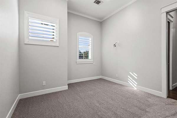 The home offers two side-entry garages--one single-car and one two-car. A thick line of mature trees provides privacy from the street, opening to a large front yard and welcoming brick facade.