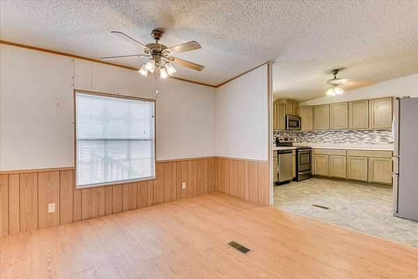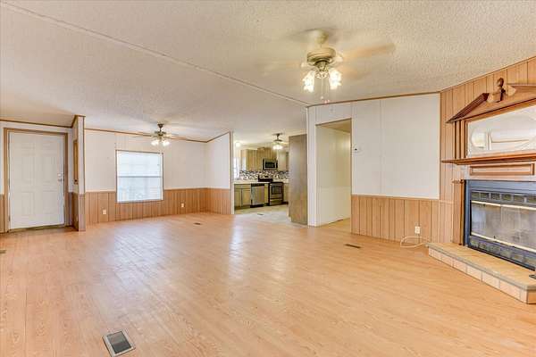 Est $955/moPeaceful and quiet. Double wide on almost 2 acres. De-Titled and on Permanent foundation. Three bedrooms and two full bathrooms. Open floor plan, with a spacious great room that flows into the kitchen and dining rooms. Cozy up by the fireplace. Kitchen features all stainless appliances and a tiled backsplash. Enjoy the fenced backyard from the covered back deck. Long, private paved driveway. Freestanding garage and storage building with automatic garage door opener. Easy to show. Home is being sold As-is.