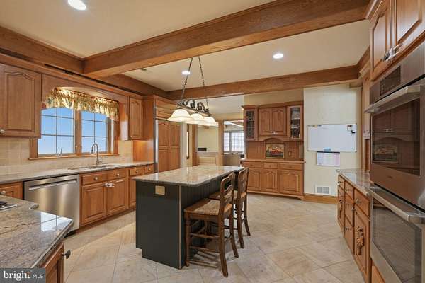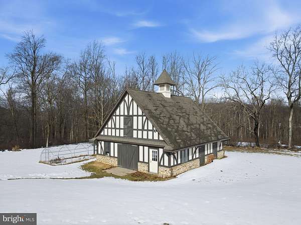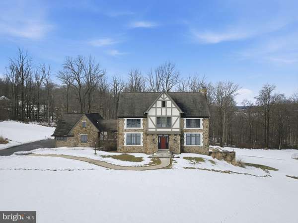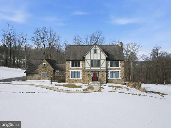 Welcome home to a truly exceptional estate in Warwick Township, where timeless elegance meets warm, everyday comfort. Tucked away at the end of a long , winding driveway, this magnificent Tudor style residence sits gracefully on over six private acres. Offering breathtaking views and the serenity that defines Chester County at it's finest this classic home offers a newly refinished barn to entertain or use for horses! The grand foyer is finished with custom millwork and hardwood floors that flow throughout the main level of this six bedroom and three and one half bath home. Offering two main level bedrooms with custom wood beams overhead once a living room transformed for living purposes. A formal powder room with wood cabinetry is just off the family great room for everyone to gather while enjoying the gas burning fireplace. The formal dining room flows directly to the custom finished chef's kitchen. Double wall ovens along with a pot filler over the five burner gas cooktop is finished with a custom hood. Centered by an oversized island that overlooks the magnificent slate patio and stone walls and walkway, this is the heart of this beautiful home. The mudroom with custom cabinets, washer and dryer has a full bath with a zero clearance walk-in shower. There is an oversized two car garage offering an unfinished walk up loft measuring 25'x35' that is plumbed for heat and water, perfect for a home office or in law quarters! The second level offers four spacious bedrooms. The primary bedroom has two walk in closets as well as a separate vanity space and a gorgeous primary bathroom ensuite. A large soaking tub and walk in shower to start the day. There are three more spacious bedrooms along with a large hall bathroom with soaking tub. There is an unfinished walk out lower level along with two generators for back up! This is more than a luxury property, it's a place to live beautifully, entertain effortlessly and create lasting memories!