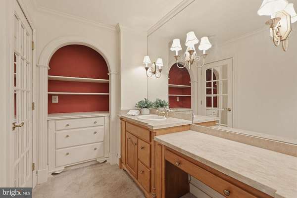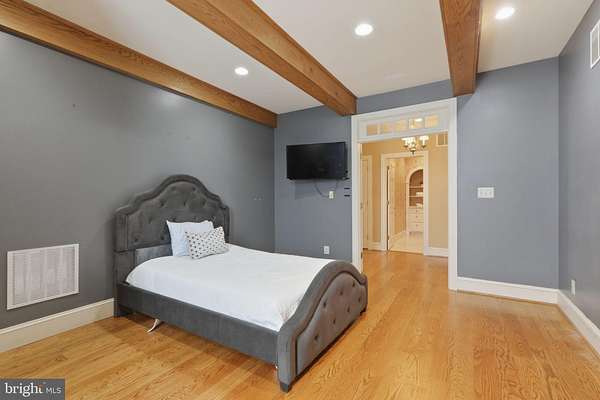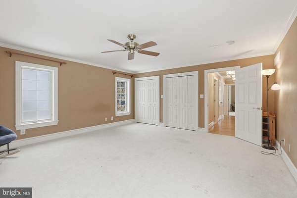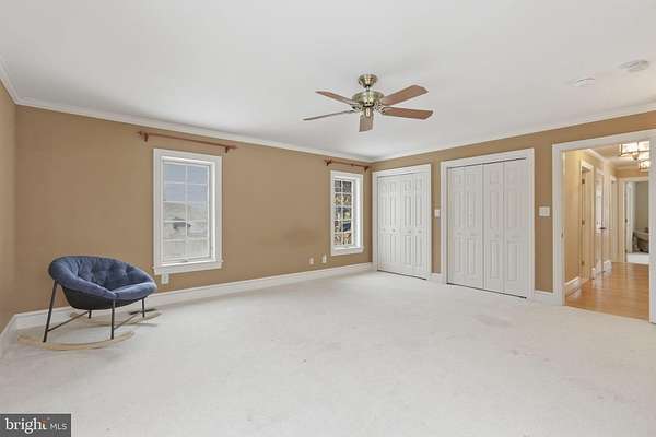 - Attic, Carpet, Ceiling Fan(s), Crown Moldings, Entry Level Bedroom, Exposed Beams, Family Room Off Kitchen, Formal/Separate Dining Room, Gourmet Kitchen, Island Kitchen, Pantry, Primary Bath(s), Recessed Lighting, Soaking Tub Bathroom, Stall Shower Bathroom, Traditional Floor Plan, Upgraded Countertops, Wainscotting, Walk-In Closet(s), Walk-In Shower Bathroom, Water Treat System, Wood Floors