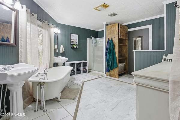 - Crown Molding, Electric Dryer Con, Electric Stove Con, Electric Washer Con, Garden Tub, Primary Bath, Separate Shower, Varied Ceiling Heights, Walk-In Closet(s)
