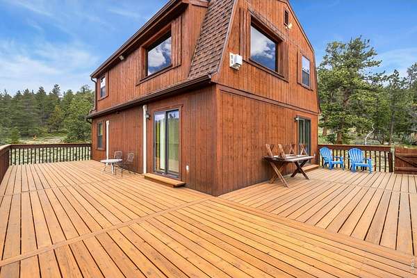 Filing 7/Lot 54A. A rare opportunity to own a Colorado high country home on over 7.5 acres bordering National Forest. This exceptional property sits on the lower end of the highly sought-after Crystal Lakes community, offering the perfect balance of serenity, privacy, accessibility and year-round adventure. Amid beautifully wooded acreage and gently sloping meadow, this 4-bedroom, 3-bath home blends comfort and style with numerous upgrades throughout. Enjoy the morning sunshine on the expansive wraparound deck, perfectly positioned on the south and east sides and surrounded by peaceful natural beauty with unobstructed views of the National Forest. Recent interior improvements include a new furnace, new zoned heating and cooling with mini-split units, newer windows and doors and a finished walkout lower level complete with bedroom, half bath, and family room. A detached oversized 2-car garage with a spacious workshop is ideal for hobbyists, woodworkers, or anyone needing extra room for projects. Ample parking accommodates vehicles, trailers, and ATVs with ease. Expansive views and peaceful surroundings create a true mountain retreat, while offering quick access to shops in Red Feather Lakes Village, 10 minutes away. Outdoor enthusiasts will appreciate the proximity to Crystal Lake (Panhandle Reservoir) - a 50-acre gem perfect for fishing, trolling, and paddle boating. Nearby Panhandle Creek and the North Fork of the Cache La Poudre River offer some of northern Colorado's finest fly fishing, while numerous smaller private lakes and ponds invite quiet exploration and reflection. Whether you're seeking a secluded getaway, a family retreat, or a year-round basecamp for mountain living, this property delivers an unmatched Colorado high-country lifestyle.