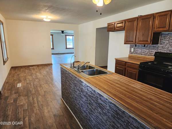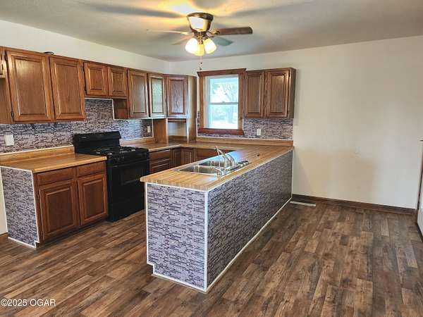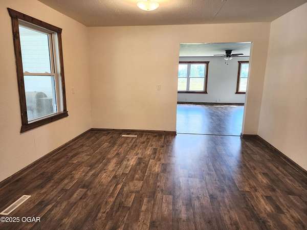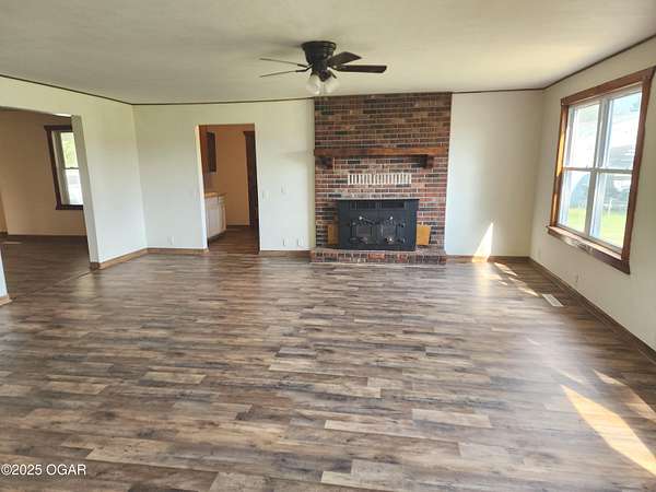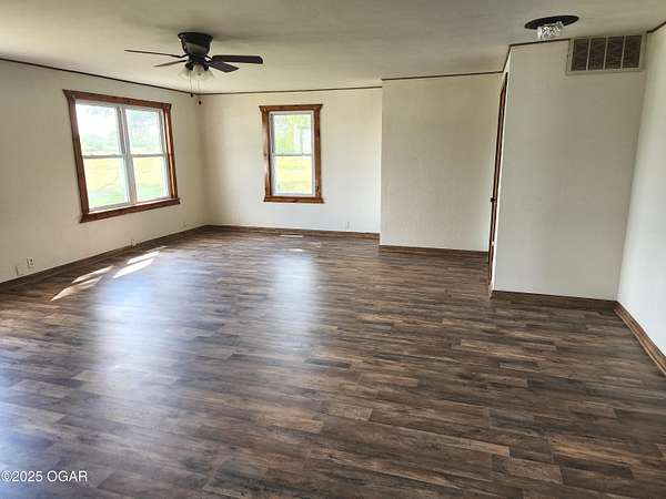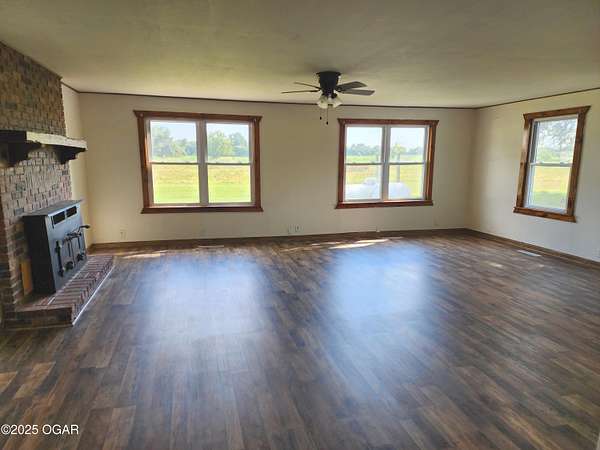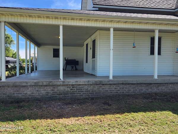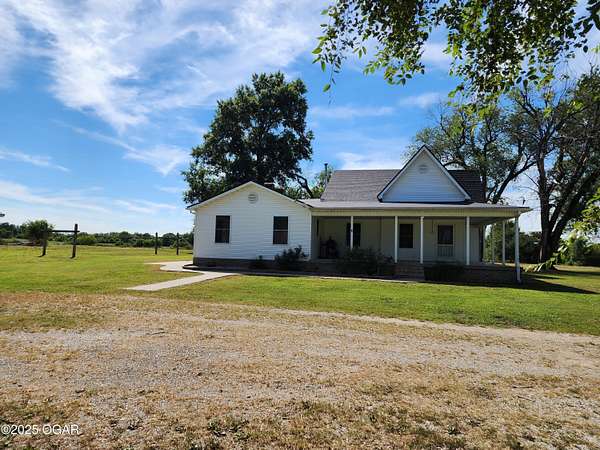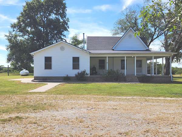 Privacy is king at this updated farm house in Lamar school district with fantastic 29' covered porch. Kitchen is open to dining which adjoins spacious living room with plenty of windows to enjoy the rural views. There are two flex areas that could serve as huge pantry or potential for fourth bedroom. Recent years have seen many updates to the property inside and out, including new HVAC 2023 and roof 2024. Outside note the she shed a short distance from 16' patio. Mature shade trees, multiple potential garden spots and what farm stead would be complete without a clothes line. Yes there's a fine one. Partial basement simply begs to store home canned goodies or offer a port in a storm. Detached barn/machine shed will keep the boy toys dry or welcome four legged family members. Rural water.