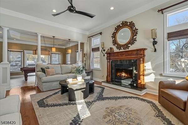 Proudly situated on 1.75 acres in Pleasant Run Estates, this beautifully updated Colonial-style residence offers a blend of unparalleled sophistication and modern luxury. The exterior showcases a striking gray brick front facade, professional landscape with lighting, entertaining patios and pool complex. Inside, the 4-bedroom plus bonus room, 4.1-bath home showcases custom moldings, transomed windows, and hardwood floors throughout, highlighting the home's attention to detail. The light-filled, thoughtfully designed floor plan is ideal for both large parties and intimate gatherings. A stunning gourmet kitchen anchors the main living areas, featuring top-of-the-line appliances, ample workspace, and seamless connection to the home's indoor and outdoor entertaining spaces. Upstairs, the primary suite provides a peaceful retreat with a spa-like bathroom, walk-in closet and exercise area with wet bar and additional closets. A versatile bonus room can serve as an in-law suite, integrating a large bedroom and the adjacent full bath. The walk-out lower level extends the living space with media area, game room and full bath. Outdoor living reaches new heights with a heated pool and spa, stone fireplace, stunning covered patio and open lawns. Additional highlights include a 3-bay garage with storage above and automatic generator. Enjoy proximity to top-rated schools, world-class golf courses, shopping and dining, NYC-bound transit and highways.