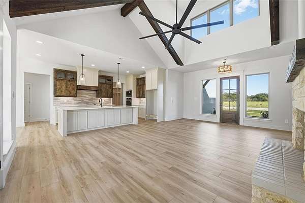 WELCOME HOME to 231 Sweetgrass in Prairie Winds ! This split-bedroom layout house has it all! The moment you walk through the door, you will be amazed as the ceiling height exceeds 20 feet, with cedar beams throughout the home and a stone fireplace with a shiplap design to the ceiling. In the kitchen, you will see an oversized island that is perfectly adjoined but still separate from your living room, perfect for hosting guests for the big game or holidays with family or friends! The master bedroom has cedar accents and a spacious bathroom with a custom closet design. The garage design is a 2 car and a split single door perpendicular to the 2 cars that face the front for a beautiful elevation look and great curb appeal! A great oversized lot also comes with this home and views from every direction! This home has it all and is waiting for you!