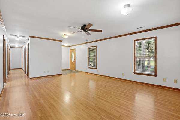 5 ACRES with endless potential!! This beautiful open lot and home offer the privacy and space you've been searching! This custom-built ranch style home features 3 bedrooms and 2 full bathrooms with a warm and inviting layout. The living room showcases beautiful wood flooring and a wood-burning fireplace with built-ins, creating a comfortable space for relaxing or entertaining. The kitchen provides ample cabinet and countertop space and overlooks a light-filled dining area. The spacious primary suite offers peaceful views of the wooded backyard and includes an en-suite bathroom with a garden tub. Two additional bedrooms and a full bath complete the home. Outside, the property features a detached workshop equipped with electricity and a workbench, along with additional versatile space for storage, hobbies, or projects. If you are a horse lover, you'll see that the neighborhood is equestrian friendly and this property has plenty of room for your own horses! With its combination of acreage, privacy, and functional features, this property offers a unique opportunity just a short drive from Jacksonville and Richlands amenities. Schedule your showing today to experience all this property has to offer.