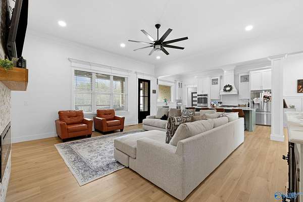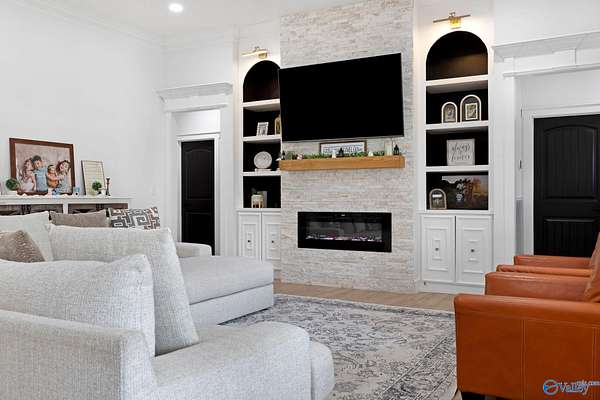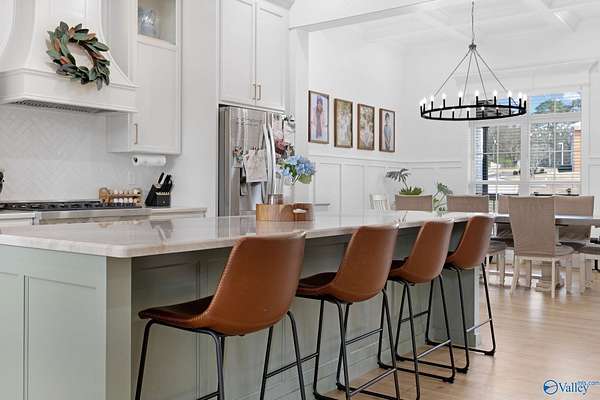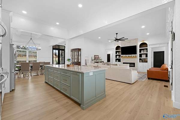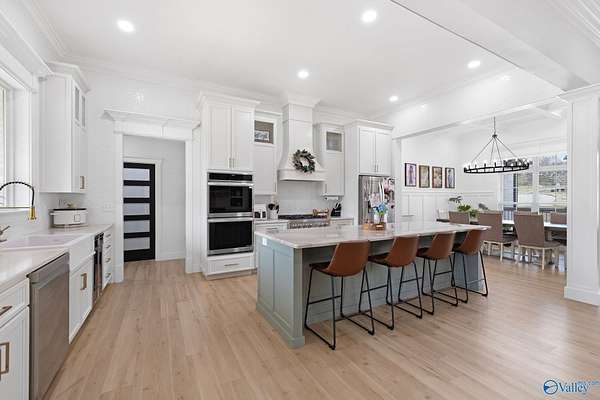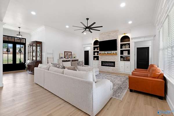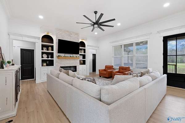 This luxury 3,608 sq/ft Craftsman home sits on 6 private acres with a creek only 6 minutes from Goose Pond Marina! Built in 2025, this home features 12-foot ceilings, recessed lighting, modern fireplace, and custom finishes throughout. The kitchen includes quartz countertops, a large island, gas cooktop, wine cooler, and a spacious butler's pantry for extra storage and prep space. The primary ensuite bath includes dual vanities, large walk-in tile shower with dual shower heads, and a huge walk-in closet with built-in systems. Ample parking with a 2-car garage and a detached 2-bay workshop currently being constructed. Don't miss this one!