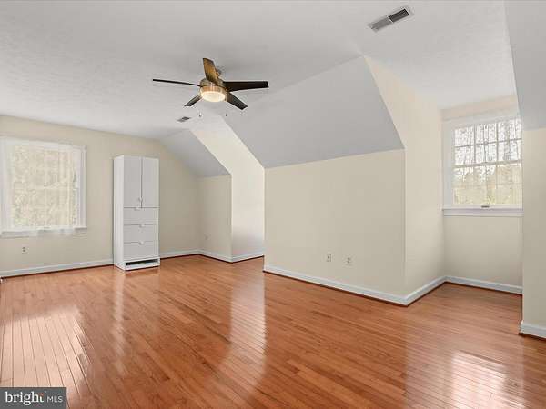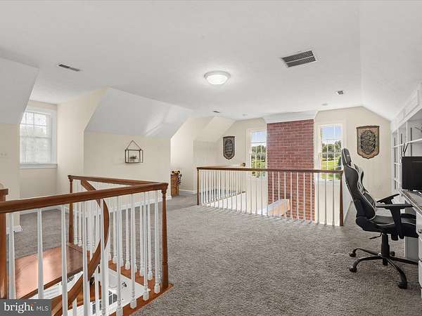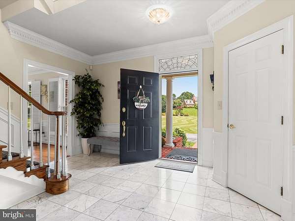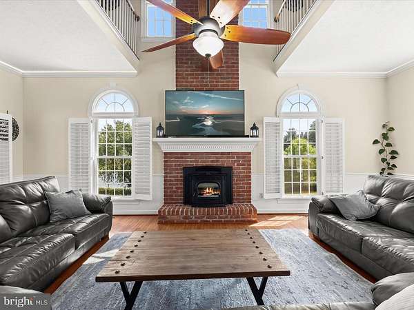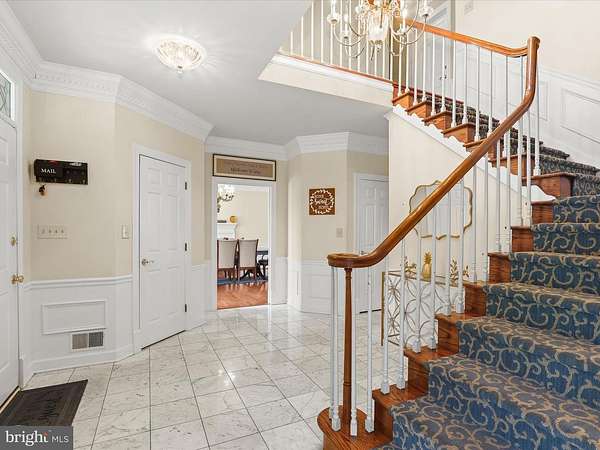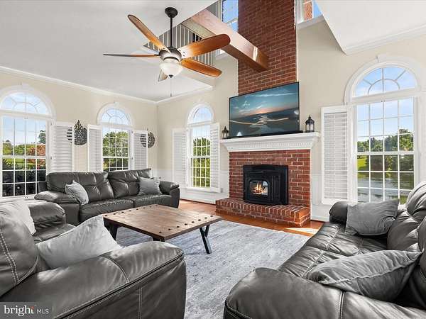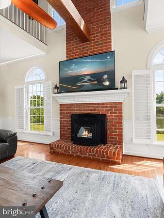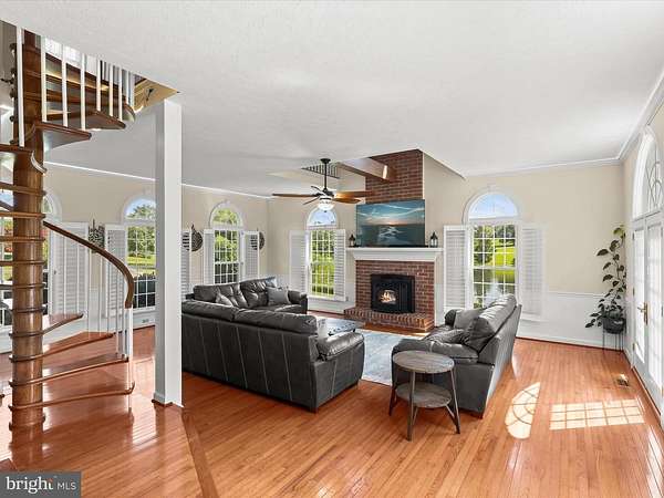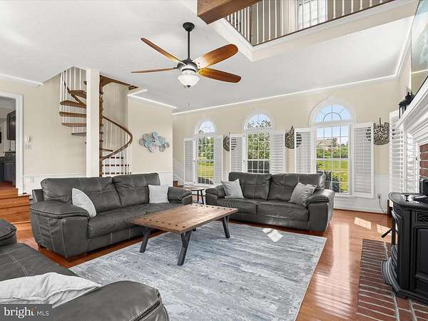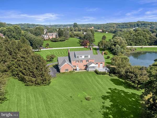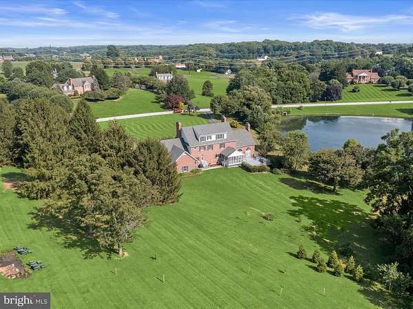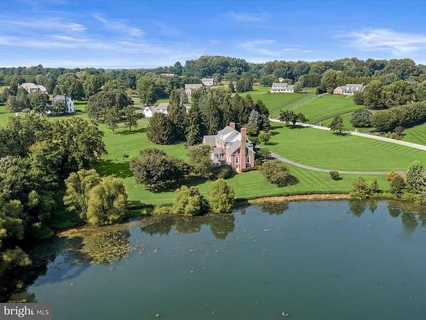 Welcome to this elegant waterfront residence where timeless design meets modern sophistication. Beautifully landscaped grounds and a stream-fed pond set the stage for a grand arrival. Stately columns and a manicured lawn frame the classic faAfA?ade, offering a glimpse of the refined interiors within. Inside, the foyer is appointed with dentil crown molding and box wainscoting, custom millwork echoed throughout the main level. The formal living room offers warmth and style with hardwood floors, a wood-burning fireplace, plantation shutters, and sunlit windows. The adjacent formal dining room features another fireplace, detailed millwork, hardwood floors, and a ceiling medallion, all overlooking the lush front lawn. Designed for entertaining, the chef's kitchen is outfitted with granite countertops, a KitchenAid island cooktop, peninsula island, double Thermador ovens, Sub-Zero refrigerator/freezer, and a second prep sink in the breakfast area. Just off the kitchen, step into the screened-in porch-an ideal extension of the space and a peaceful spot for morning coffee or al fresco dining. From there, access the expansive 1,000 sq ft deck with integrated propane grill and outdoor kitchen, all overlooking tranquil pond views. The dramatic, two-story family room impresses with exposed beams, a pellet stove, and Palladian windows that frame the scenery. A custom spiral staircase leads to a loft library, perfect as an executive office with built-in shelving and workspace. Upstairs, the home's sleeping quarters are thoughtfully arranged across two upper levels to provide both comfort and privacy. The second floor hosts the luxurious primary suite along with three additional bedrooms and a full bath, while the third floor offers two more spacious bedrooms and another full bath, ideal for guests, extended family, or a private retreat. The primary suite is a true sanctuary, complete with its own fireplace, a serene sitting room, two walk-in closets, and a separate dressing area. The en suite bath is spa-inspired, featuring a soaking tub, custom vanity with built-in shelving, and a personal cedar wood closet. Each of the three secondary bedrooms on this level offers generous space, natural light, and convenient access to the shared bath. On the top level, two additional bedrooms and a full bath provide excellent flexibility for guest accommodations, an au pair suite, or creative studio space. The finished lower level expands your living space with a large recreation room featuring a sleek electric fireplace and a step-down game room with a full-size bar, perfect for billiards, ping pong, or movie nights. Function meets flexibility in the oversized three-car garage, which includes a dedicated workshop area and ample storage, ideal for car enthusiasts, hobbyists, or anyone in need of extra space. Set on over 3 acres, the grounds include a lush lawn, newly planted fruit trees, and access to the scenic, stream-fed community pond, perfect for fishing or quiet reflection. Pond privileges are included. Recent upgrades include two new HVAC units with 10-year warranties (2025), full interior paint (2023), new carpet (2022), water heater (2019), and a water filtration system (2018). With its luxurious updates, versatile layout, and serene setting just minutes from Baltimore and major commuter routes, this extraordinary estate offers the best of refined country living with everyday convenience. Note: Select interior photos have been virtually staged.