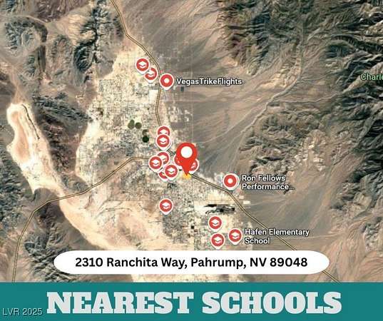 Start on US-95 N from downtown Las Vegas. Continue on US-95 N for about 30 miles. Turn left onto NV-160 W (also known as Blue Diamond Road). Stay on NV-160 W for about 33 miles into Pahrump. Turn left onto Homestead Road. Continue south on Homestead Road for about 3.5 miles. Turn right onto Thousandaire Blvd and go about 0.5 miles. Turn left onto Ranchita Way. 2310 Ranchita Way will be on your right.