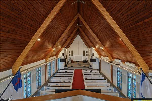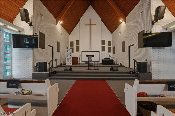 Rarely does a commercial opportunity combine a corner lot with over two acres with the versatile infrastructure to support almost any vision. Located on a prominent corner lot just blocks from the shores of Lake Erie, 2310 W. 9th Street represents a significant footprint in one of Ashtabula's most desirable growth corridors. While currently serving as a meticulously maintained church, the property is a blank canvas for redevelopment. Its location-minutes from the bustling boutiques of historic Bridge Street, the recreation of Walnut Beach, and the academic hub of Kent State University-makes it a premier candidate for conversion into a boutique event center, professional office complex, educational facility, or even a unique residential-mixed use project. The land itself is the standout feature, offering over two acres of level, usable space including a massive paved parking lot with 50 marked spaces and an expansive green field to the south, perfect for further construction or outdoor amenities. Supporting the site is a robust ~8,867 SF building designed for high-capacity gatherings. It features two grand assembly halls, several private offices, and multiple public bathrooms. The facility is move-in ready with significant mechanical investments, including a new furnace and AC system, a peaked roof under 10 years old, a flat roof replaced within the last three years, and a security system with battery backup. A fully functioning kitchen with all appliances included and a large detached outbuilding for additional storage complete this comprehensive package. Whether you choose to adapt the existing character-filled structure or re-imagine the entire two plus acre corner lot, this property offers the scale and location to anchor your next major venture.