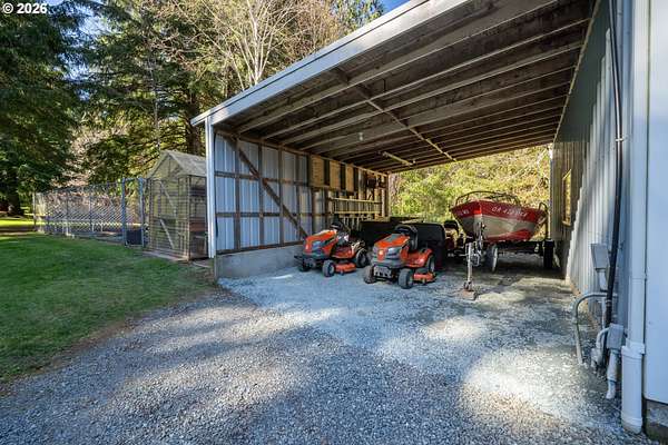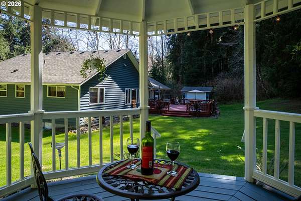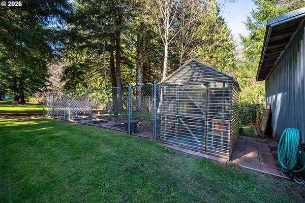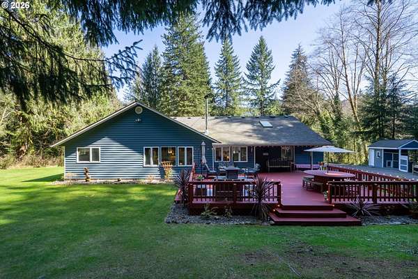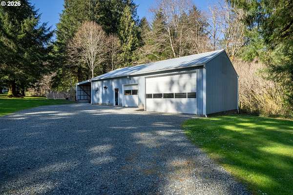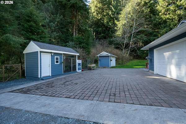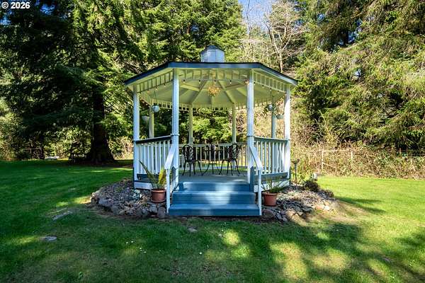 THE ULTIMATE ADVENTURE ESTATE: 8+ ACRES, 30 X 52 ENCLOSED SHOP AND PRIVATE TRAILS. Make this your Family Basecamp for Amazing Adventures. House is centered in a private park-like setting with gated entry and fully-fenced front and back acres. New Roof in 2024, large front deck and expanded back deck both face a recreational paradise with Gazebo, Working Waterwheel, Picnic Tables, Firepit, Horseshoes, Lawn Sports and unlimited Outdoor Fun. Walk the trail or take your ATV up to the Waterfall and acres of Personal Camping Grounds. The 1,500 sq ft, 3-Bay Shop can handle all your big and tall toys, with high ceilings, concrete floors and metal roof. Shop is all-weather with heat and 220 power. The home is a canvas of classic design and exquisite care waiting for your special touches. Spacious one-story with 3 large bedrooms, plus an enviable office/den with solid oak built-ins and floors. Kitchen has room for a chef to spread out and a breakfast bar where everyone gathers. For the Green Thumbs, there is a heated greenhouse and fenced garden. Plenty of RV parking with Four 30 amp hookup sites. Even a Heated Dog Kennel! All this is tucked away in a quiet, private setting you may never want to leave.... but if you do, you are minutes from the amenities of Nehalem, Garibaldi, Tillamook and the Oregon Coast. See it to believe it!