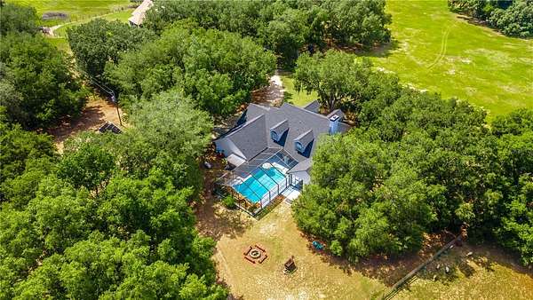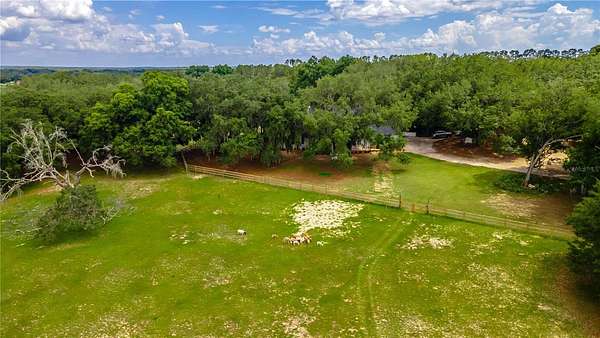 An estate home quietly set off a private drive for added privacy on 11.27 acres near Umatilla, FL.