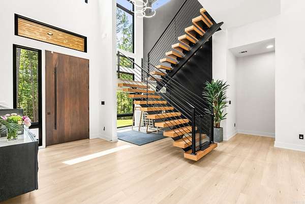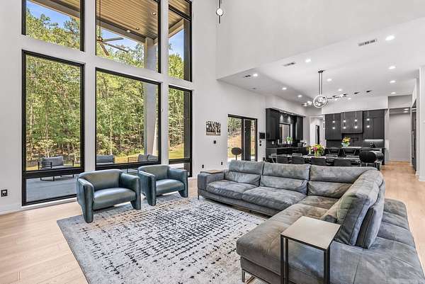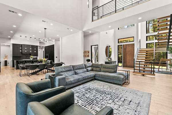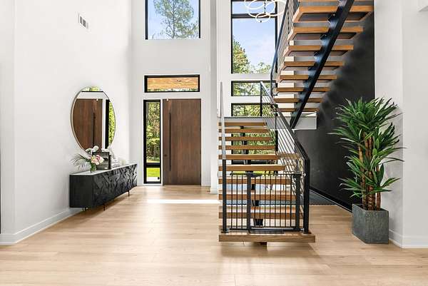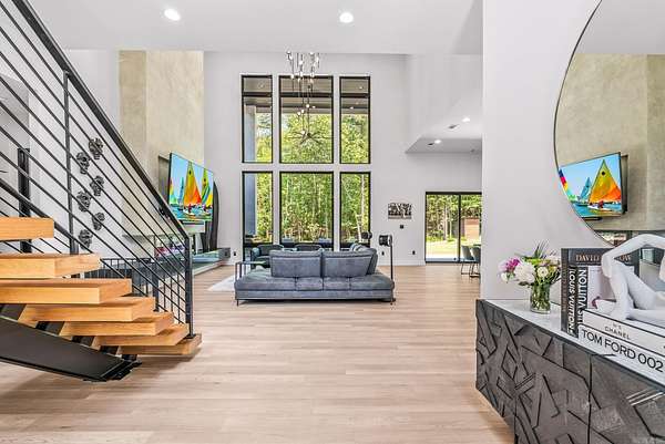 One of a kind hyper-modern 2024 estate nestled on 6.92 acres offers a rare blend of luxury, privacy and style. Conveniently located near Wildwood Park for the Arts, shopping, and dining, this home offers peace and seclusion. Every inch of this property has been meticulously designed with a seamless blend of beauty and functionality. The open floorplan is highlighted by soaring 25 foot ceilings & a striking center spine staircase, setting the tone for the entire home. The kitchen, dining room, & great room effortlessly flow together, with floor-to-ceiling windows that bathe the space in natural light--creating a welcoming atmosphere for gatherings. The living area includes a Venetian plaster fireplace. The powder room features Versace wallpaper. On the main level, the primary bedroom offers a spa-like bathroom & oversized walk-in closet. A private guest suite with full bath could be 2nd primary bedroom. Office currently serves as a nursery. Upstairs, two additional spacious bedrooms & a beautifully designed hall bath. The covered outdoor patio spaces offer idyllic private wooded views that surround the property. RV parking pad. Quality craftsmanship throughout. Luxury at its best.
