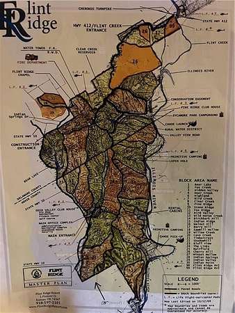 River area building lot! Lot is a buildable lot with electric and water at the road in front of the lot. The river access is less than 1.5 mile away. Rural water and high speed internet available. Buyer to satisfy all utility information for themselves. Must have a Realtor to access the security gate. Live in a gated resort community. Flint Ridge lot with beautiful, quiet surroundings. Build your new home or get away retreat here! Lovely building spot. Clubhouse, Fitness,9 hole Golf Course, Recreational Facilities, Swimming Pools, Tennis Courts, Hiking, Floating, Swimming Areas. Restaurant, Fire Department, Statehood House, and Worship Center. See FlintRidgeResort.com for more.