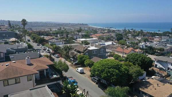 Located in the highly sought-after Walking District, this unique property offers breathtaking ocean views and endless possibilities. Sitting on two legal lots, the site currently features a charming 1920s beach bungalow -- 2 bedrooms, 1 bath, 572 sq ft.. The true value lies in the potential: develop or build up to capture expansive whitewater and panoramic ocean views. Whether you're looking to restore, expand, or create a stunning new coastal retreat, this is a rare blank canvas in one of North County's most desirable beach communities. Conceptual plans are available for review for a single family residence. Enjoy the ultimate coastal lifestyle just blocks from: Seaside Market, Glen Park, Popular cafes and restaurants, Boutique shopping, Scenic hiking and biking trails, The Costal Rail Trail & World-class beaches and surf spots. This is a rare chance to own a prime piece of coastal real estate in one of San Diego's most beloved neighborhoods. Don't miss out!