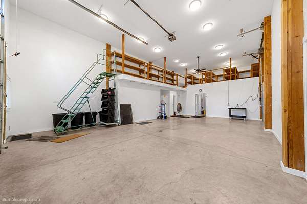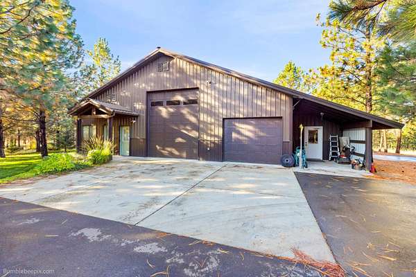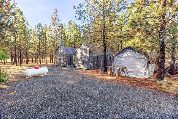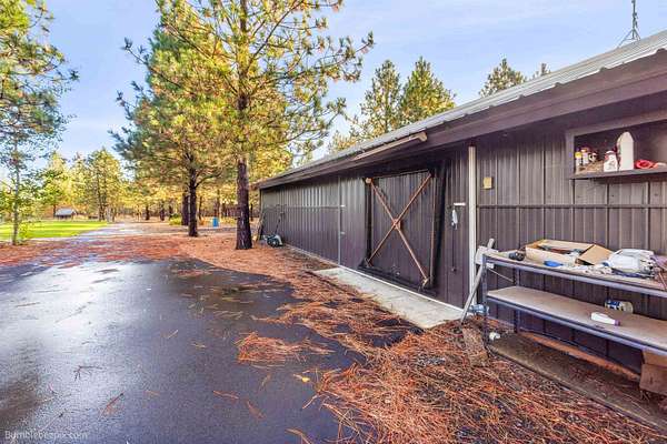 Barndominium with a unique opportunity to own a versatile property with bonus living space! This 14x22 space includes a bathroom, small living area, and its own heating & A/C system-ideal as a guest suite, home office, or studio. Please note: this building is not permanently affixed to a foundation and is considered personal property. Now step into the heart of the property: a one-of-a-kind Barndominium on 42+/- private acres, offering the perfect blend of rustic charm and modern comfort. Extra livingroom could be an additional bedroom. Enjoy territorial views, a strong 20+ GPM well, and the natural beauty of approximately 1/2 mile of Deep Creek winding through the landscape. The land is well-suited for a variety of uses, with pasture areas perfect for horses or livestock, numerous outbuildings, and a fenced garden area ready for your green thumb. Tucked away in peaceful privacy, yet conveniently located just minutes from Fairchild AFB and only 25 minutes to Downtown Spokane.