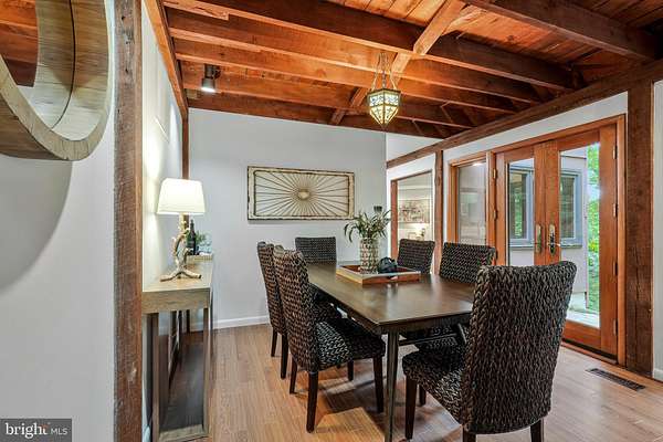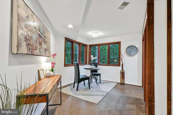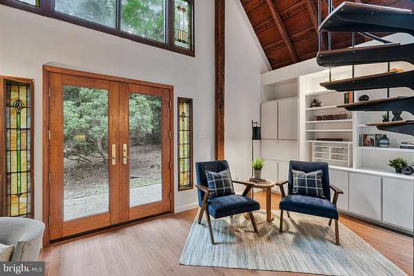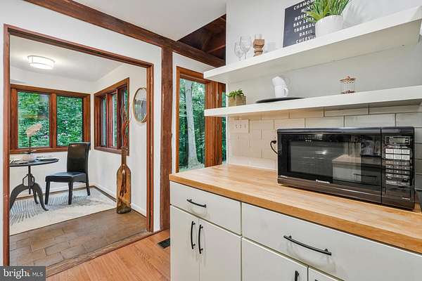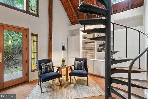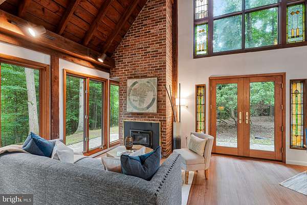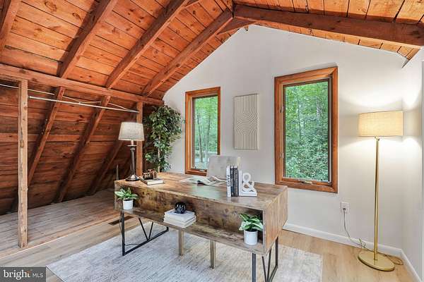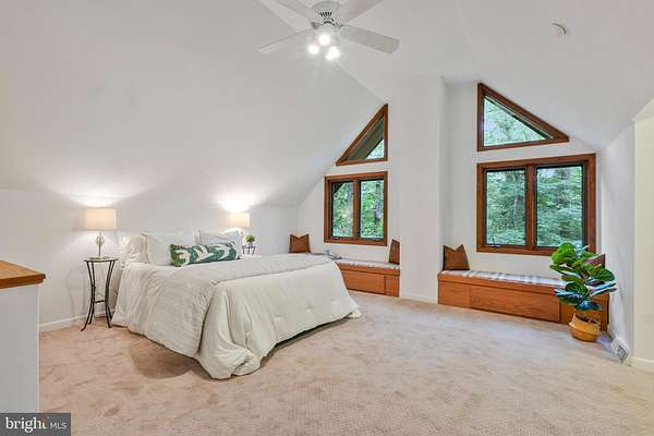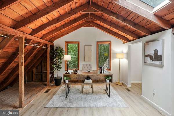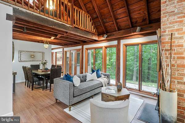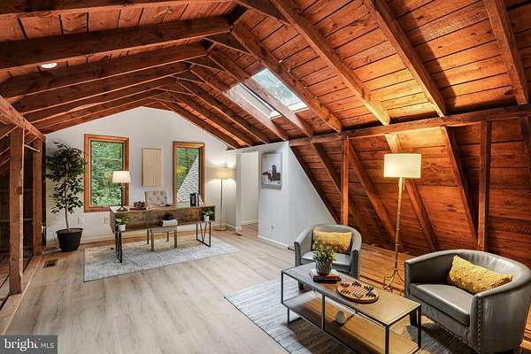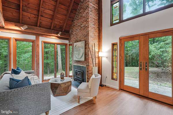 Welcome to your oasis just outside the city -- in the stunning Moyaone Reserve. Nestled on 5 acres of serene, wooded land, this architect-enhanced home offers 2,786 square feet of peaceful living. Lovingly maintained by its original owners and thoughtfully updated with recent pre-market improvements, this unique property combines architectural character, size, and setting in one of the most sought-after, nature-centered communities in the region. Originally a barn, the home has been expanded and reimagined by one of the owners-an architect-to create a spacious retreat that blends rustic charm with modern comfort. Distinctive wood accents, soaring ceilings, stained glass, and abundant natural light give this home a character all its own. This home was one of the contributing buildings in the Historic preservation designation that was awarded to Moyaone Reserve in 2020. The original barn section features dramatic vaulted ceilings and an expansive loft perfect for a studio, home office, or flexible living area (the loft got an upgrade in 2025 with structural flooring augmentation and stylish, low-maintenance LVP to match the main level bedrooms). The spiral staircase adds so much charm, but the loft can be accessed from a traditional staircase in the primary suite as well. Skylights and a full wall of French doors + floor-to-ceiling windows in the open concept living and dining room brings the outdoors in. The wrap-around patio and retractable screens for the French doors would make for amazing indoor-outdoor entertaining in the summer! A vintage built-in bookcase in the living room still has a working desk feature, room for all your books, and doors to hide the other practical items you don't want on display. The open-concept living room includes a traditional wood-burning fireplace with stove insert and a full bathroom, with more stained glass and vintage appeal, adds extra flexibility for guests. The semi-formal, open dining area has easy flow into the updated kitchen, which features a brand-new Smart electric range (2025), solid wood cabinetry with contemporary white cabinets, black hardware and soft-close drawers, a new sink and solid surface countertops (with a bonus butcher block countertop -repurposed from a bowling alley! Kitchen remodeled in 2023). A breakfast area directly off the kitchen, as well as a walk-in pantry, and adjacent utility/laundry room with front loading washer and dryer add extra convenience - not to mention ease of bringing in groceries from the car or kicking off your snow boots in the winter. Two spacious bedrooms sit across from a full bathroom with a mid-century flair and a recently re-enameled tub with fresh hardware (2025). The primary suite offers cathedral ceilings, multiple closets (four to be exact), built-in drawers, and charming window seats with storage -plush new carpeting adds comfort underfoot (2025). The ensuite primary bathroom is spacious and well-appointed, with separate shower and tub and once again, beautiful views of nature. The lower-level recreation room includes a freestanding wood stove and another glass slider leading directly to the yard-ideal for cozy evenings or more relaxed indoor-outdoor entertaining. See the information packet for more updates in the home and community features. Living in Moyaone Reserve means more than just owning a home-it's joining an historic, nature-focused community that preserves the Mount Vernon Viewshed and offers unmatched access to nature. Enjoy miles of hiking trails in Piscataway Park, the National Colonial Farm, boardwalks, kayaking on the Potomac, and community amenities like the Moyaone pool, community center, pavilion, garden, grill pavilion, tiki bar and more (HOA amenities may require voluntary membership and reservations - but also includes road maintenance). Conveniently located for commuting to Joint Base Andrews, National Harbor, Old Town Alexandria, the Pentagon, National Landing, and downtown DC.