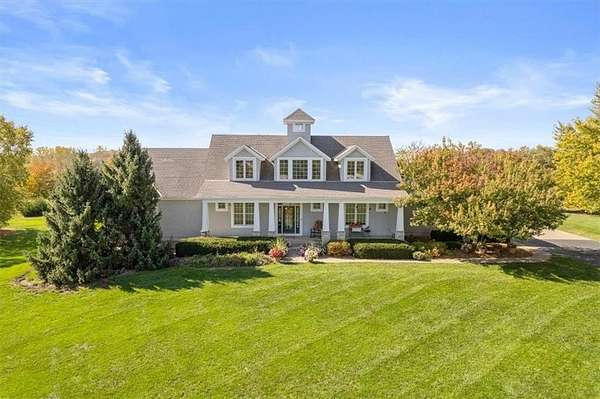 6 beautifully landscaped acres with pond. Located in the neighborhood of Quivira Estates. Custom designed and built in 2006 with extras like: 2X6 framing, engineered joist system, cupola with lookout at the top of house, lawn irrigation around house, tornado straps and no posts in the garage. 4 current bedrooms: primary on the main floor, 2 up and 1 in the lower level. he 3 car garage, covered front porch, covered back porch has trex style flooring, giant pantry, partially fenced, buried electricity, central vac, etc. Open floor plan has lots of large windows with views of extensive landscaping and pond with fish. 4 current bedrooms: primary on the main floor, 2 up and 1 in the lower level. Was designed so main floor office could become a 5th bedroom and the exercise bedroom plus office in the lower level could become a 6th bedroom. 4 full baths, 2 on the main floor, 1 upstairs and 1 in the lower level (with heated floor). Walkin storage area on the 2nd floor. Walkout/ walkup 9' basement features a fireplace, wine cellar, walk behind wet bar, exercise room, 2nd office, shop room, bedroom that is currently being used for dogs (dog tub and pet door), storage plus full bath. Located on paved roads, with paved driveway, close access to 69 highway. Seller accepted a sight unseen offer.
