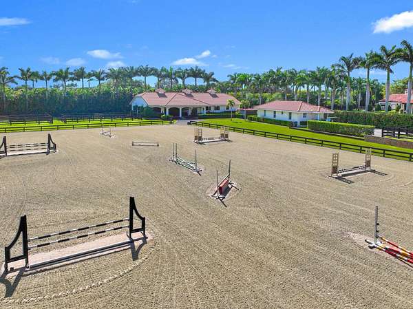 Est $78,135/moAn exceptional Wellington Equestrian Estate just four properties from PBIEC, offering an unmatched location mere minutes walking to the show rings. This Palm Beach-style compound spans over 4 acres across two lots and includes an exquisite 5-bedroom plus office main residence with a guest apartment, two 8-stall barns, a 3-bedroom staff apartment, an oversized new riding arena, Grand Prix Field and 7 paddocks. A rare opportunity to own a top-tier equestrian estate steps from the horse show.