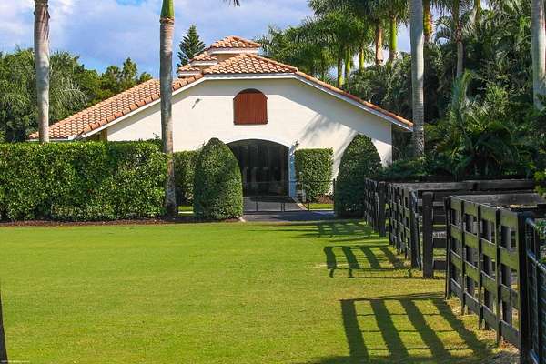 This Mediterranean style equestrian compound boasts Palm Beach Island level finishes and spans over 4 acres across two lots and includes an exquisite, 11,359 sq ft (7878 sq ft under air), 5-bedroom plus office main residence with a guest apartment, two 8-stall barns, a 3-bedroom staff apartment, an oversized NEW, sub-irrigated riding arena that measures 210x125ft, a grand prix field and 10 paddocks. A rare opportunity to own one of the finest equestrian estate in Wellington. Designed by architect Roger Janssen, the main home features elegant living and dining spaces, a billiards room, office, screened porch, butler's kitchen and well-appointed kitchen and family areas. Upstairs hosts the primary suite and three additional bedrooms. Premium finishes include cypress ceilings, custom cabinetry, hardwood flooring, a full-house generator, Infinity pool overlooking the field and much more.