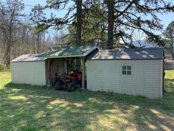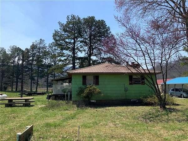 Est $617/moWell constructed older 3 bedroom 1 bath home on 1&1/2 usable, mostly open, acres. Well, rural water available, OzarksGo/electric for fast fiber optic, 2-8X40 and 1-8X20 shipping containers, numerous outbuildings. Highway frontage but the home sets off the road and quiet. Close to the White River, National Forest and miles of side by side/ ATV trails. Low maintenance masonite siding and a metal roof. Covered 8X16 back porch, large shade trees, surveyed. Less than an hour drive to Fayetteville/ Springdale area. 10 minutes to gas, shopping and eats. Affordable country living. Utility availability is the responsibility of the buyer or buyers agent.