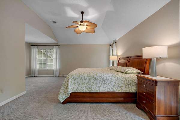 - Hot Tub Spa, Stall Shower, Tray Ceilings, Upper Level Primary, Vaulted Ceilings, Walk In Closets, Window Treatments