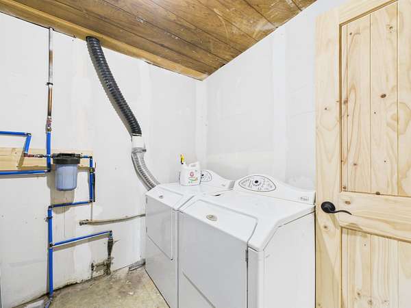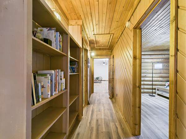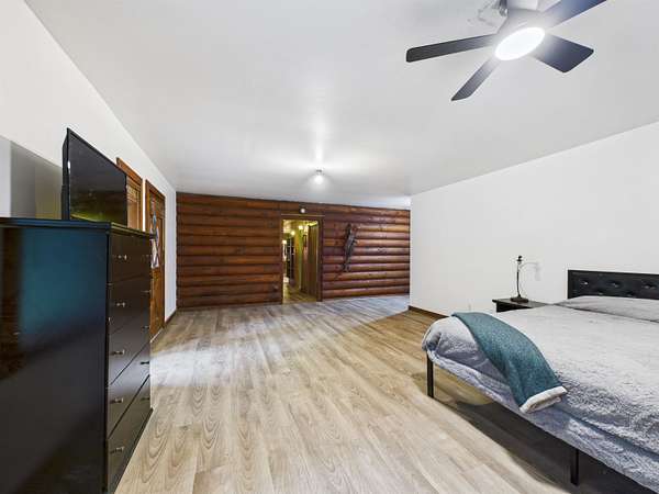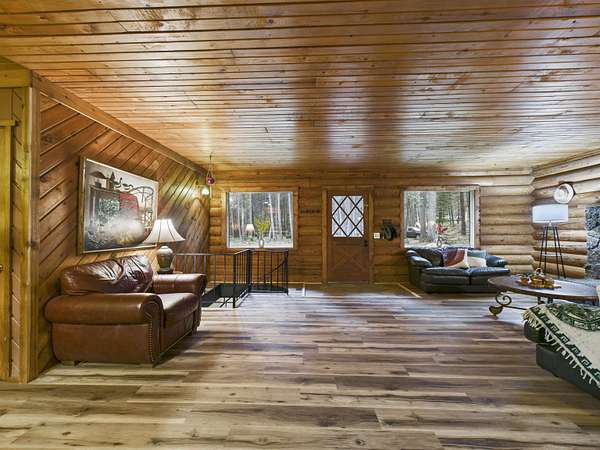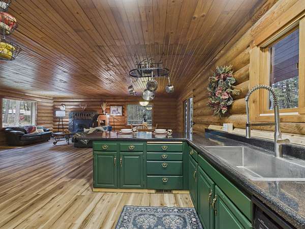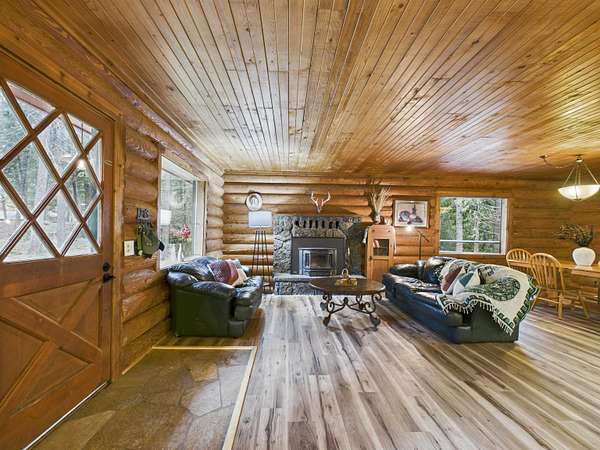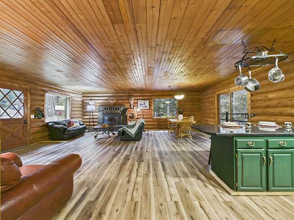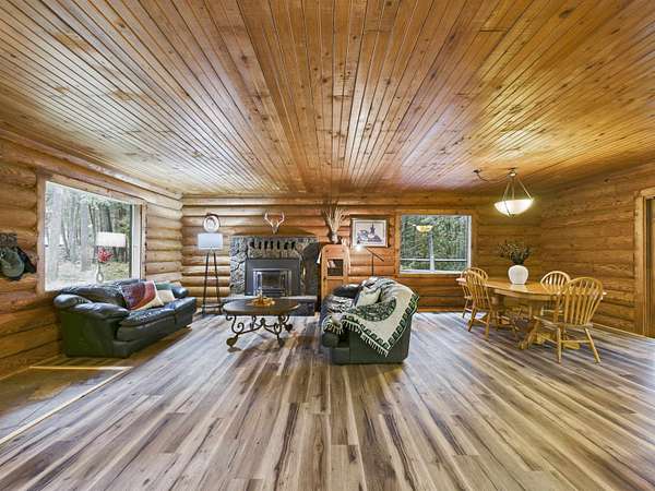 MOTIVATED SELLERS DUE TO RELOCATION. Peaceful, updated log home on 3+ acres with a year-round creek and private beach! Approximately 2,600 sq. ft. with 4 bedrooms, 2 full bathrooms, and a wrap-around deck overlooking the creek. Interior updates include new LVP flooring throughout, handmade pine trim, and fully updated bathrooms featuring new tile, vanities, vanity countertops, lighting, and a live-edge countertop in the basement bathroom. The kitchen offers freshly painted cabinets, updated countertops, appliances, and a new range hood. Finished basement 2025 includes new drywall, pine trim, solid wood doors, and fresh paint. Exterior upgrades include 15 tons of gravel added to the driveway, a new front walkway, and refreshed landscaping beds. Log walls have been refinished, the deck has been newly stained. Major system improvements within the last 3 years include a new well pump, whole-home filtration system, and water heater. Property also features a 3-stall wood shed & storage shed. Abundant wildlife area!