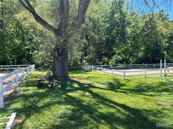 Newly Available!!! ...again, after being under contract for nearly 8 months. Now is your chance if you missed it the first time around to secure yourself a horse-property right in Chesterfield proper. A successful boarding/training business has existed on this property since 1971. The smallish facility runs smoothly and can be your next turn-key business. 5.6 acres in a gorgeous suburban setting. Mature trees frame this flat land on public sewer & water. Dry creek to back of property w/bridge to large pasture. The old Baxter house can be rehabbed or torn-down. 2 Horse barns include the "Old barn" w/vintage oak and 11 stalls, feed room/tack room, hay loft that holds 800-900 bales. The large airy Morton barn has 9 oversized stalls, tack room & wash bay that is attached to the 90'x60' indoor arena w/new LED lighting, kick-boards & viewing rm w/fridge. Enter the cozy lounge w/stone fireplace, wood bench cubbies, bathroom, wet bar, fridge & laundry area. This area is imperative for the weeks of summer camp which fill up quickly and are beloved by the community. Upstairs of the lounge is an apt in use by the caretaker. 2 outdoor arenas include Jumping 100'x180' & Dressage ring 96'x48' trailer parking, maint shed, chicken coop & 7 paddocks, 20 stalls in all. 500+ feet of road frontage and sits across from middle school