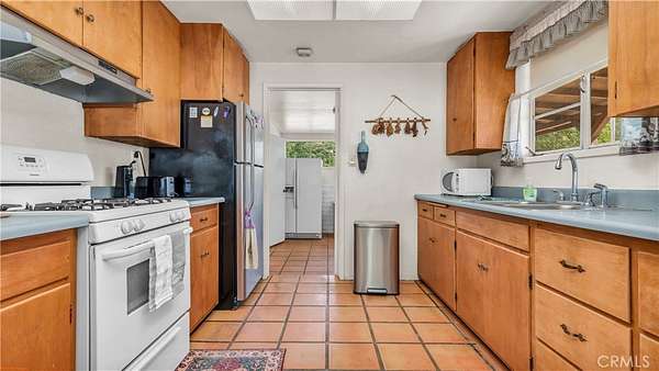 Two Homes on Nearly Five Fully Fenced Acres with Expansive Desert Views. A rare opportunity to own two homes on almost five fully fenced acres, complete with a private well, wide-open desert vistas, and exceptional space and privacy. This setup would work well for an artist retreat or launching point for your unique desert experience. The main house offers 2 bedrooms (one currently configured as a den with a wet bar) and 1 bathroom, plus an indoor laundry room. Saltillo tile flooring enhances the kitchen, laundry room, hallway, and bathroom, while a cozy carpet inset warms the living room.