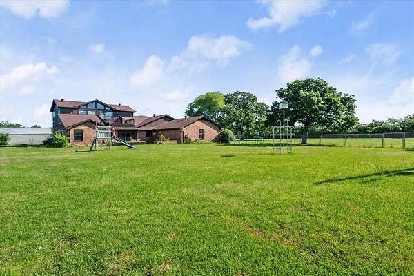 Rare opportunity to own 4 scenic acres in Mansfield with room to roam and endless potential. This spacious home offers 3 living areas, 4 bedrooms, and a 3-car garage, all with a layout that invites creativity and comfort. Step inside to a tiled entry that leads into a cozy living room with a brick wood-burning fireplace, built-ins, and warm paneling. The kitchen features a center island, Jenn-Air range, vented hood, trash compactor, and dishwasher, and opens to a bright breakfast area with natural light. Just beyond, a vaulted den with built-ins and a window seat offers a perfect spot to relax or gather. The primary suite includes a walk-in closet and en-suite bath with dual sinks, separate tub and shower, and private water closet. Secondary bedrooms have walk-in closets and a mix of carpet and luxury vinyl plank. Two hall baths reflect a retro charm, one with double sinks and built-ins. Upstairs, a spacious game room with vaulted beam ceiling, two Murphy beds, a window seat, and balcony access creates a flexible space for guests, play, or work. An upstairs utility area houses a 2022 HVAC unit and extra storage. Outside, the property is fully fenced and cross-fenced with two loafing sheds, a tack room with electricity, and a large newer Morgan building. A beautiful pond surrounded by cypress trees and blooming irises features a fountain for year-round charm. City water serves the home, with well water for landscaping & Septic system in place. Convenient to Hwy 360 and Mansfield amenities. Sold as-is.
